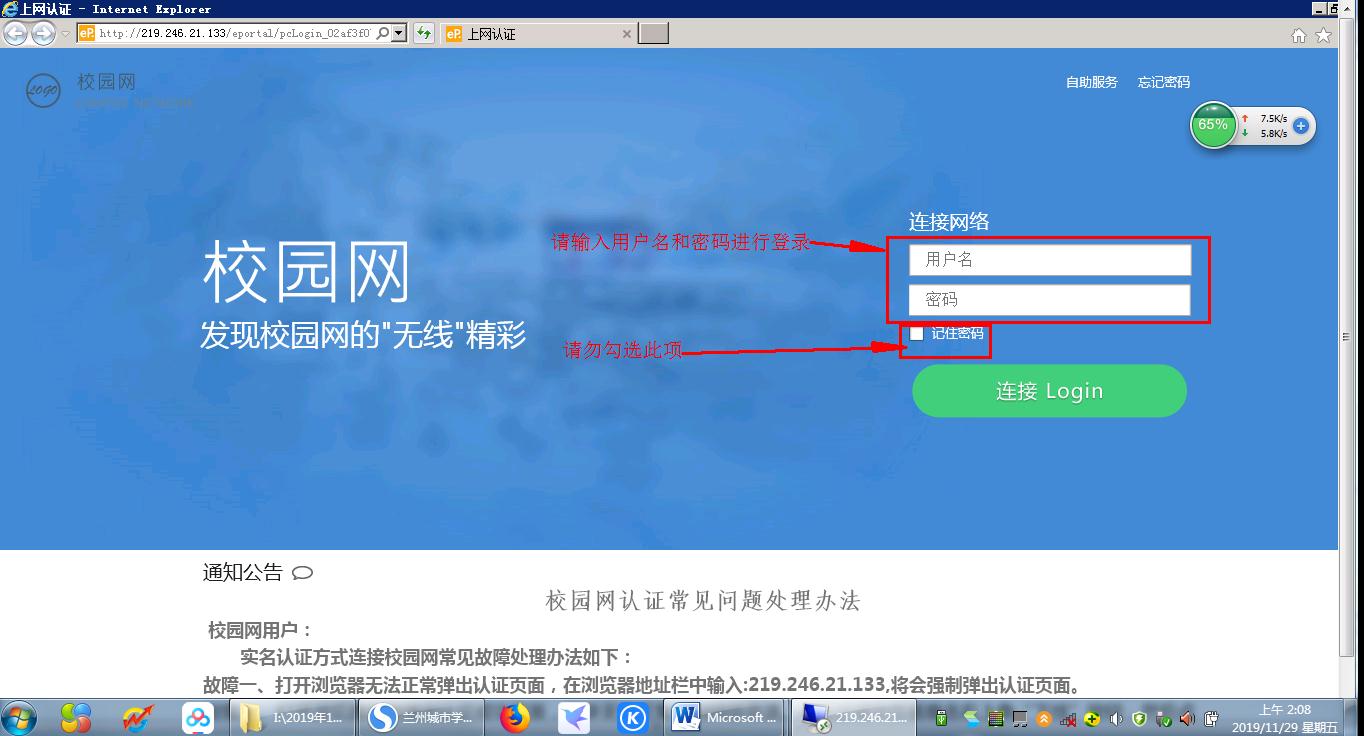 一、凡教师机电脑桌面上出现了《多媒体教室上网说明》文件图标的教师机,已经完成了上网方式的改造工作。需要上互联网的任课教师必须使用本人校园网帐户通过网页认证方式登录上网。下课后,请务必手动打开注销页面,做下线处理。具体操作方法说明如下: