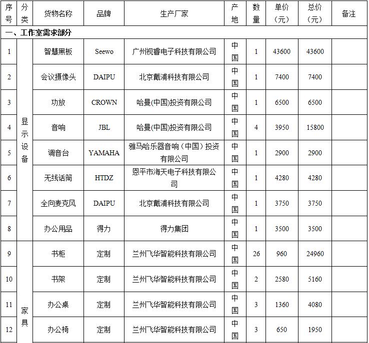 甘肃中金国际招标有限公司受beat365在线唯一官网的委托对“beat365在线唯一官网张艳平名师工作室设备采购及环境改造项目”以竞争性磋商形式进行采购,磋商小组于2020年5月22日确定成交结果。现将成交结果公布如下: