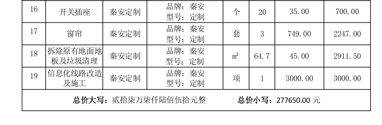 成交金额:¥277650.00元 大写:贰拾柒万柒仟陆佰伍拾元整