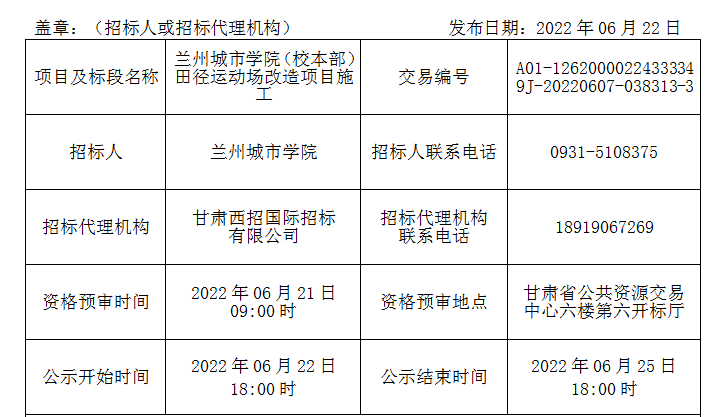beat365在线唯一官网(校本部)田径运动场改造项目施工资格预审结果公示