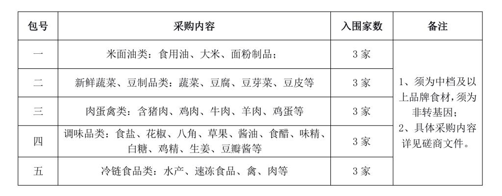 采购需求:为做好学校食堂原材料保质保量供应,beat365对学生餐厅饮食原材料配送服务进行采购。