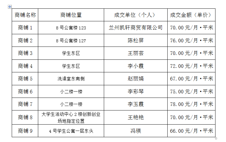四、主要标的信息:beat365在线唯一官网校本部及培黎校区商铺招租1项