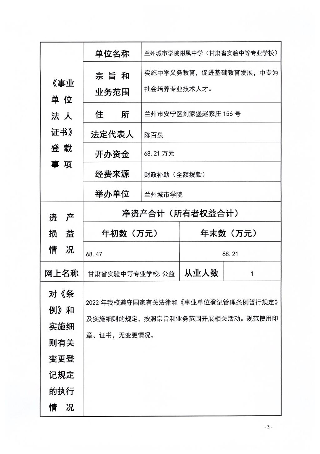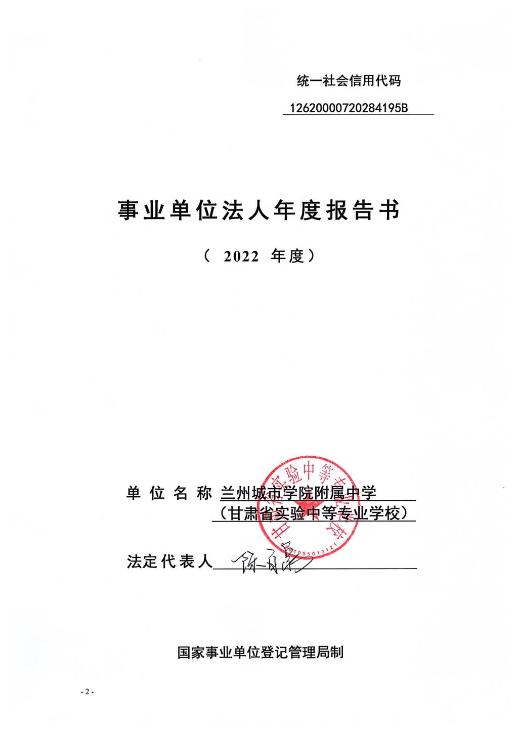 根据甘肃省事业单位登记管理局相关要求,现将beat365在线唯一官网附属中学《事业单位法人年度报告书(2022年度)》予以公示,如有不实,请以书面形式向beat365在线唯一官网人事处反映。