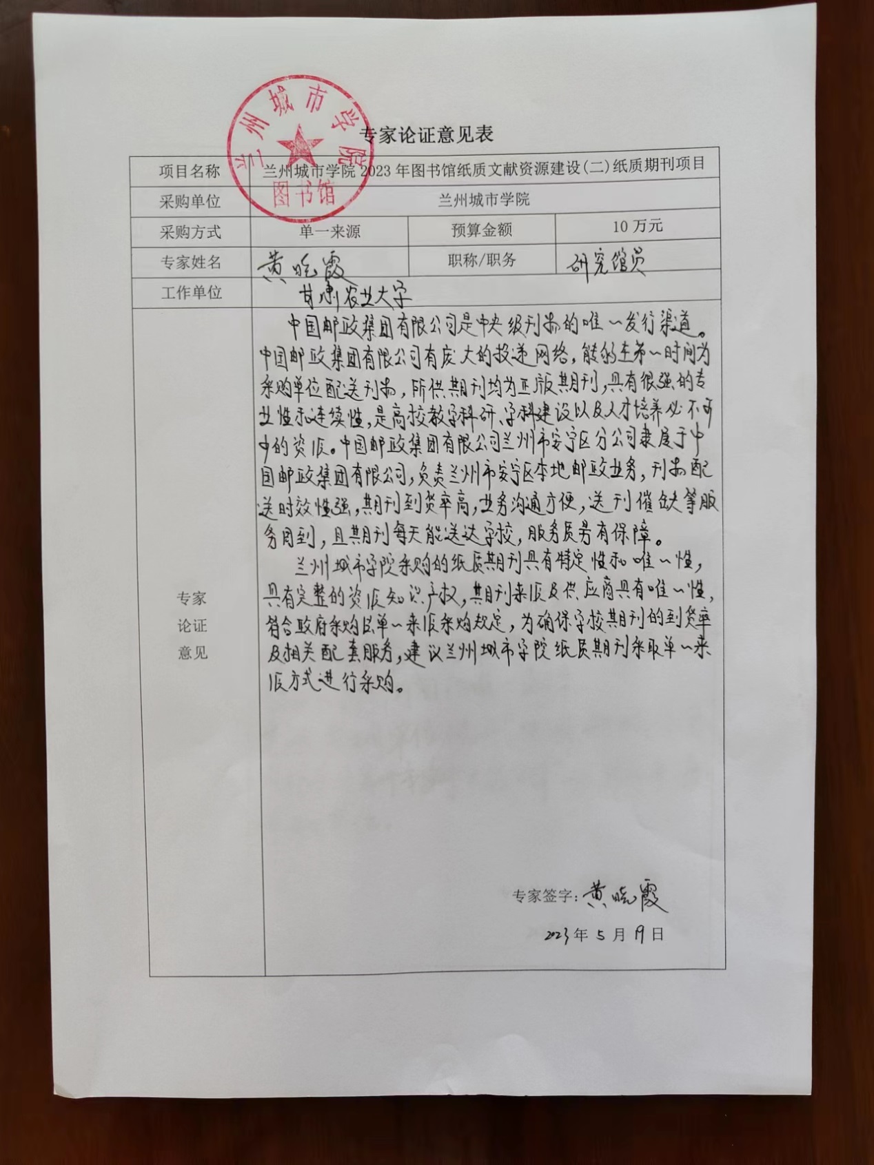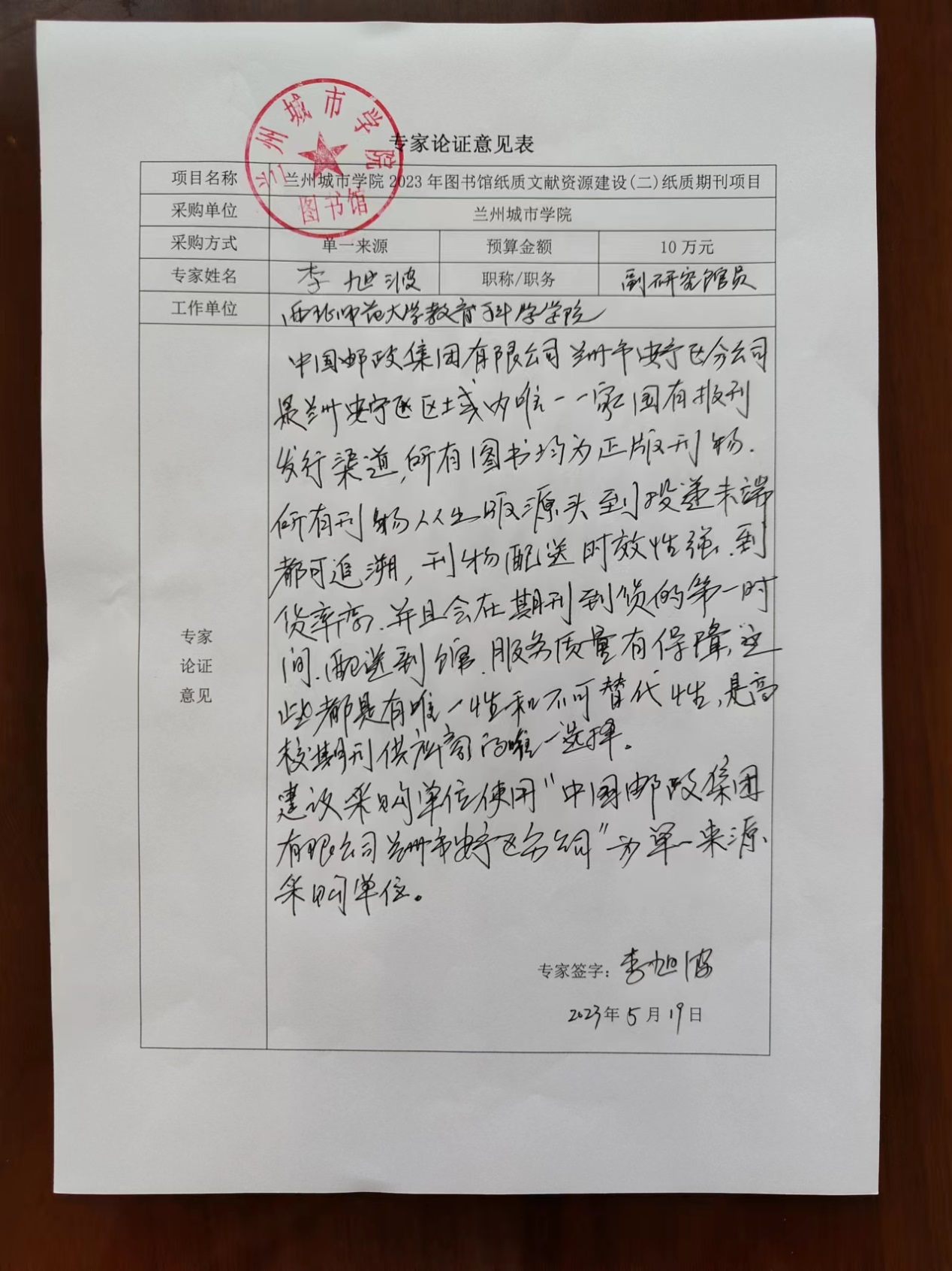 (五)采用单一来源采购方式的原因:中国邮政集团有限公司兰州市安宁区分公司刊物配送时效性强,期刊到货率高,业务沟通方便,有成熟的投递条件,服务质量有保证,具有“迅速、准确、安全、方便”的投递服务优势。