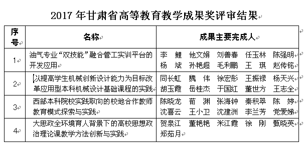 附:2017年甘肃省高等教育教学成果奖评审结果