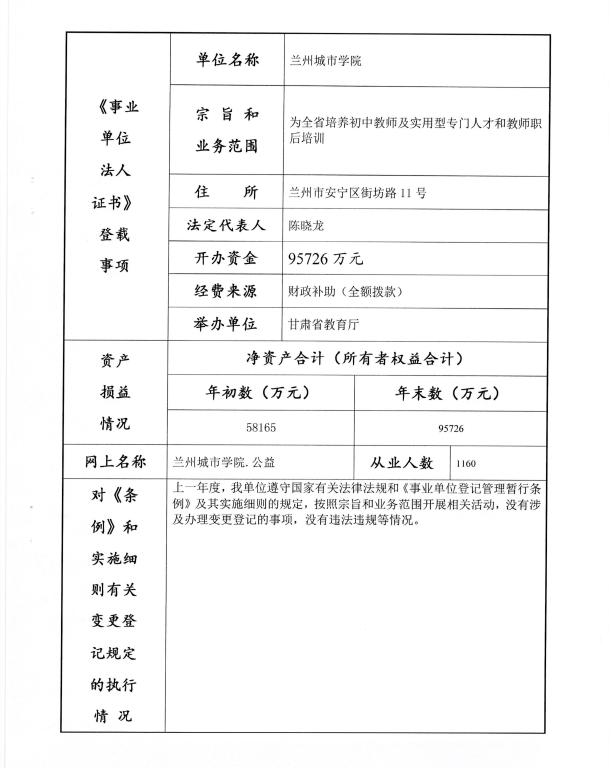 根据甘肃省事业单位登记管理局相关要求,现将beat365在线唯一官网《事业单位法人年度报告书》