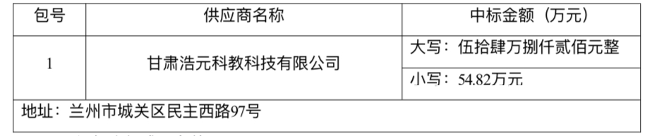 招标代理机构:甘肃中远天成项目管理咨询有限公司