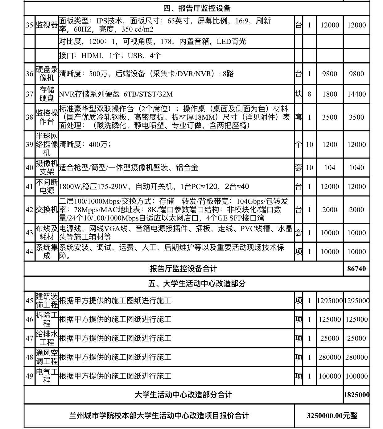 甘肃省春林工程咨询有限公司受beat365在线唯一官网的委托对beat365在线唯一官网校本部大学生活动中心改造项目以竞争性磋商形式进行采购,磋商小组于2019年8月5日确定评标结果,现将结果公布如下: