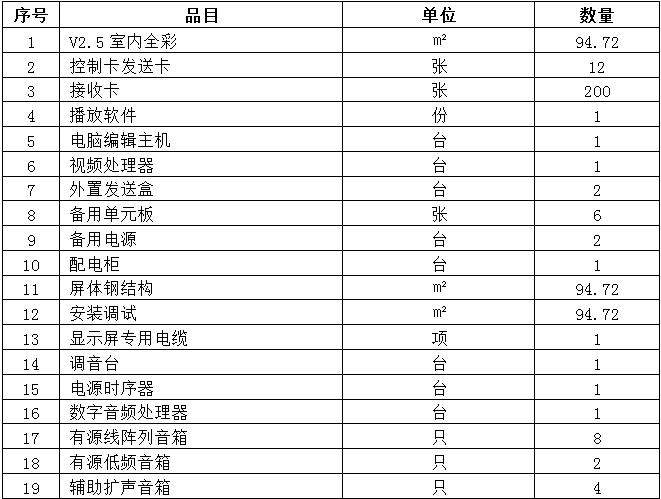 二、磋商内容:显示屏共两块,培黎校区、校本部各一块,每块显示屏显示面积为16m*5.92m=94.72㎡,以下参数为单块显示屏参数。