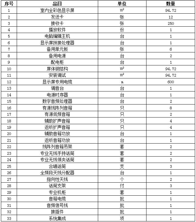 二、磋商内容:显示屏共两块,培黎校区、校本部各一块,每块显示屏显示面积为16m*5.92m=94.72㎡,以下为单块显示屏参数。