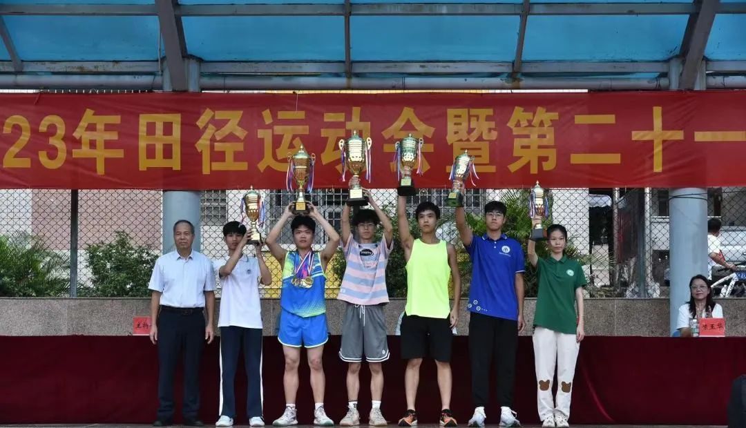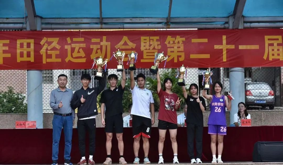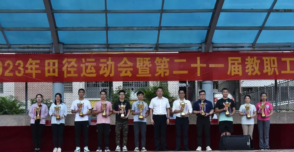 党委委员、党委办公室、校长办公室主任谭冠中为永利集团3044官网欢迎您普通专业组2023年全年体育竞赛团体总分前六名获奖单位代表颁奖