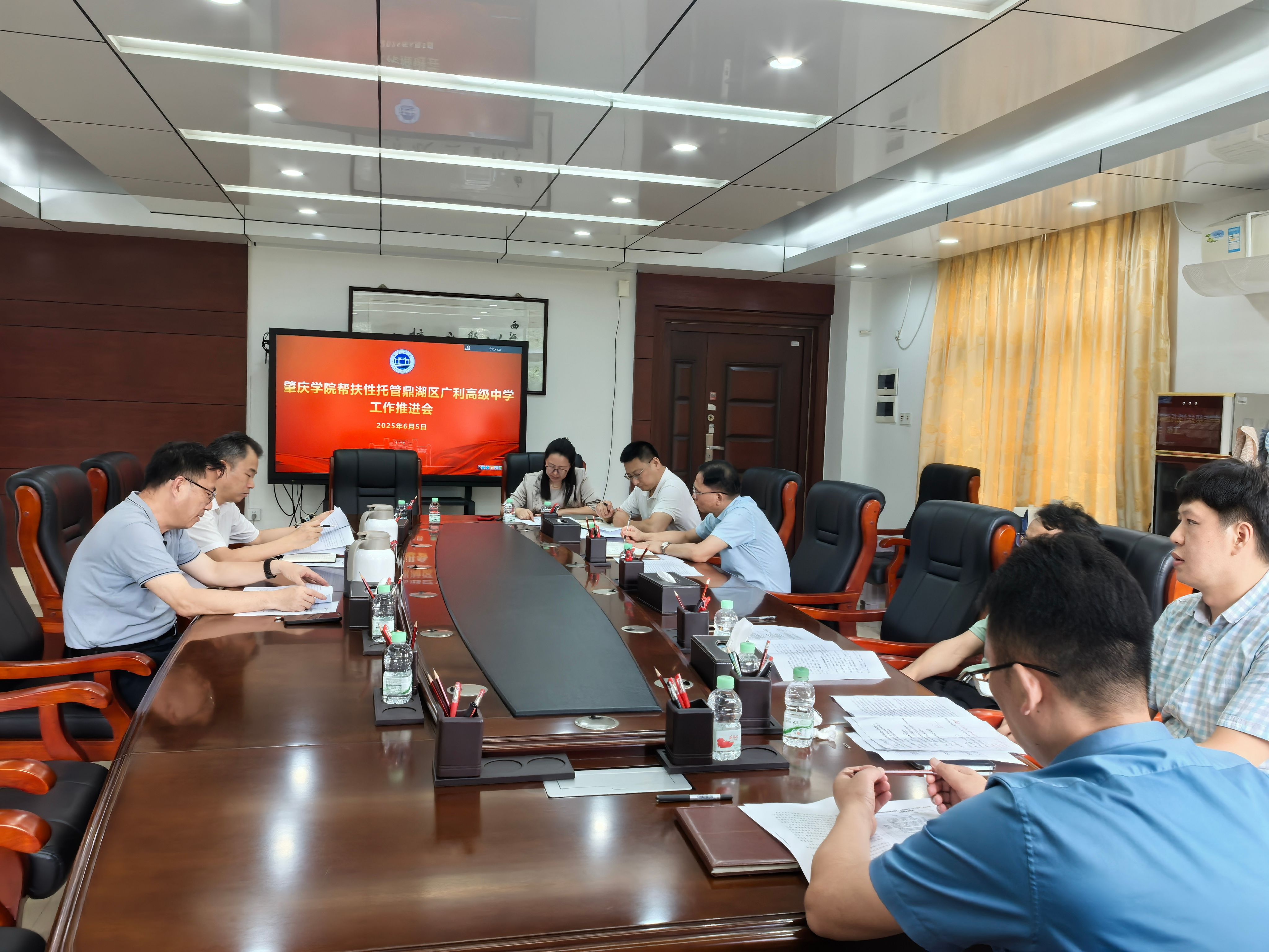 本网讯 6月5日,学校召开鼎湖区广利高级中学帮扶性托管工作推进会,学校党委书记谢冠华、副校长肖起清出席会议,人力资源部、科学技术部、发展规划部等部门主要负责人参会。