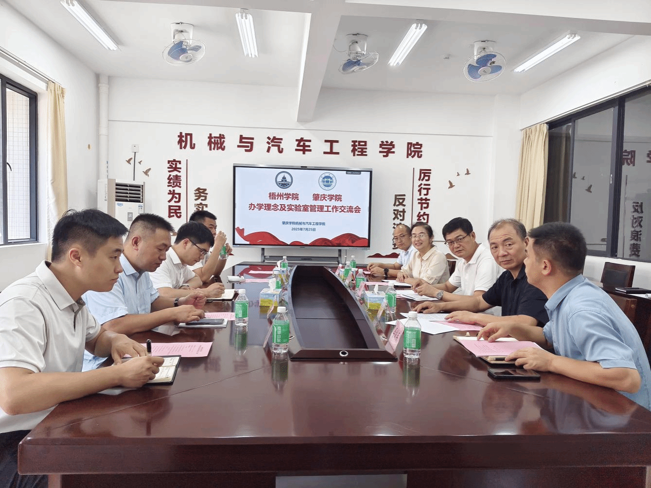 本网讯 7月25日,梧州学院副校长邓小林率机械与资源工程学院一行到访永利官网机械与汽车工程学院,就实验室建设、本科生实践教学及申硕工作等开展考察交流。学校副校长唐冬冬陪同交流。