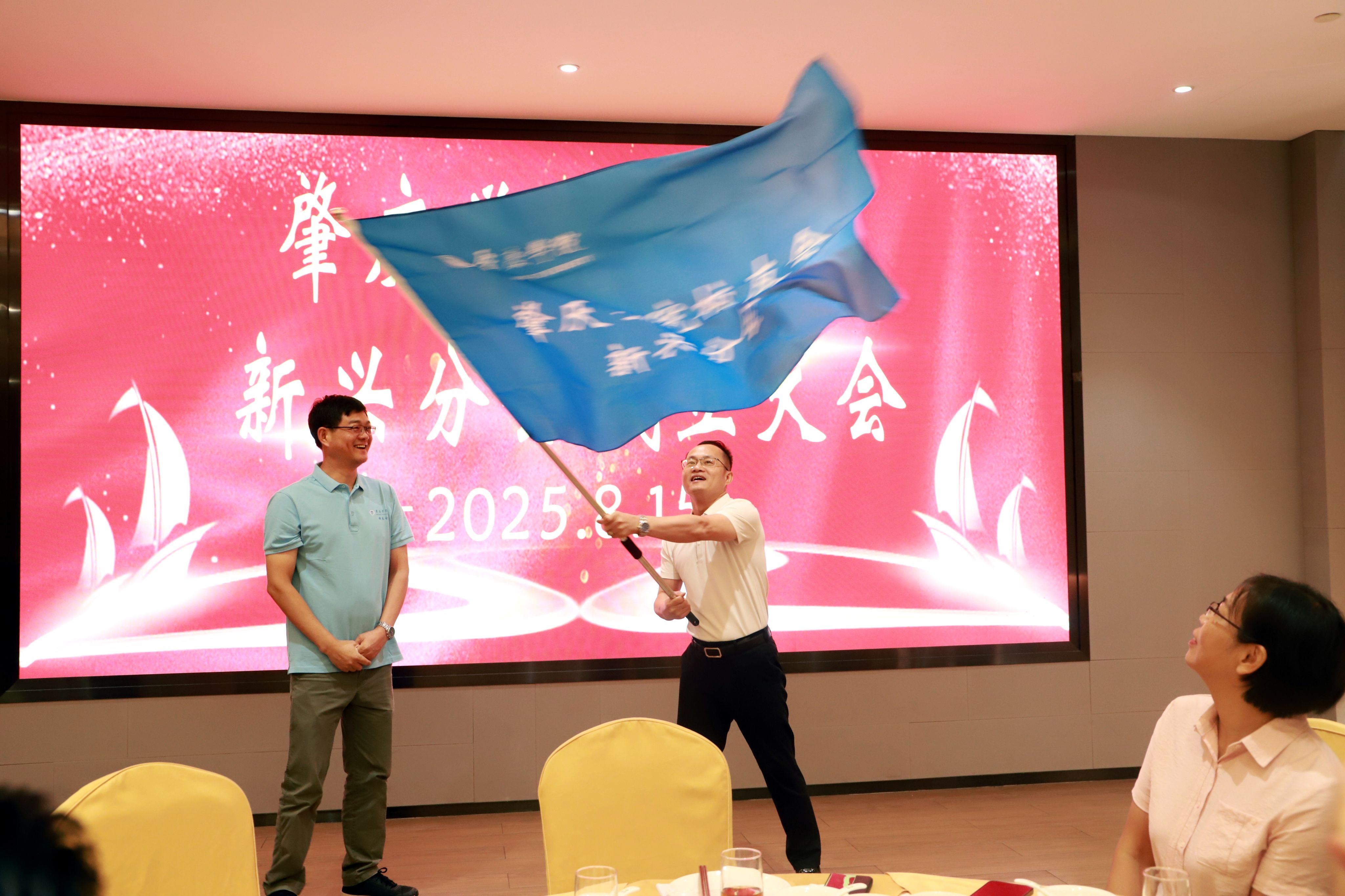 随后,分会成立大会在翔顺筠州酒店三楼葵花厅召开。唐冬冬副校长为新兴分会会长李家强颁发聘书、代表学校向分会授旗、并赠送纪念品,传递母校对新兴分会的期望与全力支持。唐冬冬在发言中强调,校友是学校的宝贵财富,新兴校友分会作为首个县区级校友分会,是校友情感的 “温馨港湾”,也是母校与新兴地区深化产学研合作、优化人才培养的“全新桥梁”。他期望分会履行职能,成为推动多方发展的 “强劲助推器”。