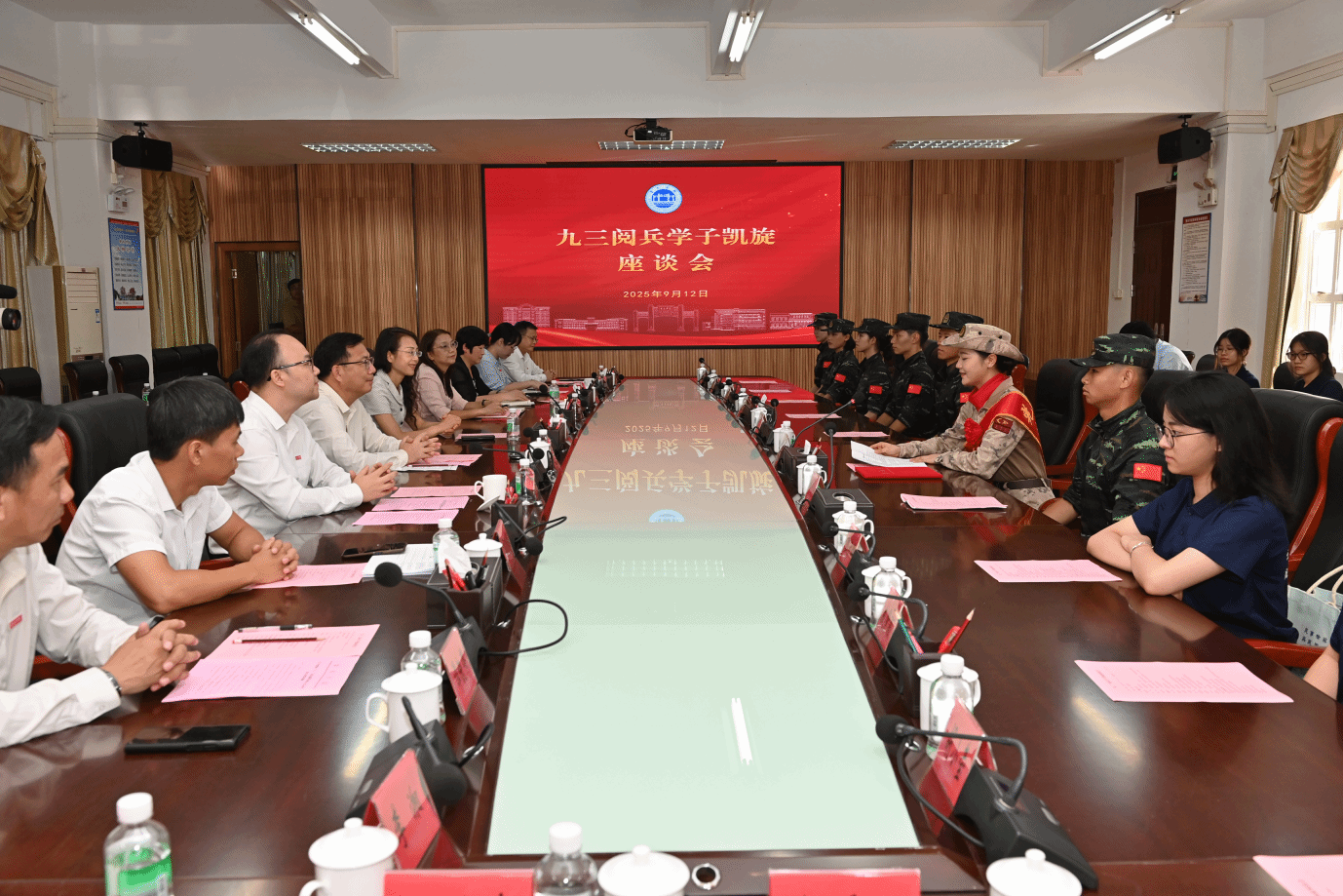 本网讯 9月12日,学校召开“九三”阅兵学子座谈会,欢迎永利官网优秀参阅学子王可心荣誉归来。校党委书记谢冠华,校长李琴,学校相关职能部门负责人,环境与化学工程学院党委书记刘远君、院长李湘等班子成员、辅导员及新生军训教官和青马工程学员代表参会。