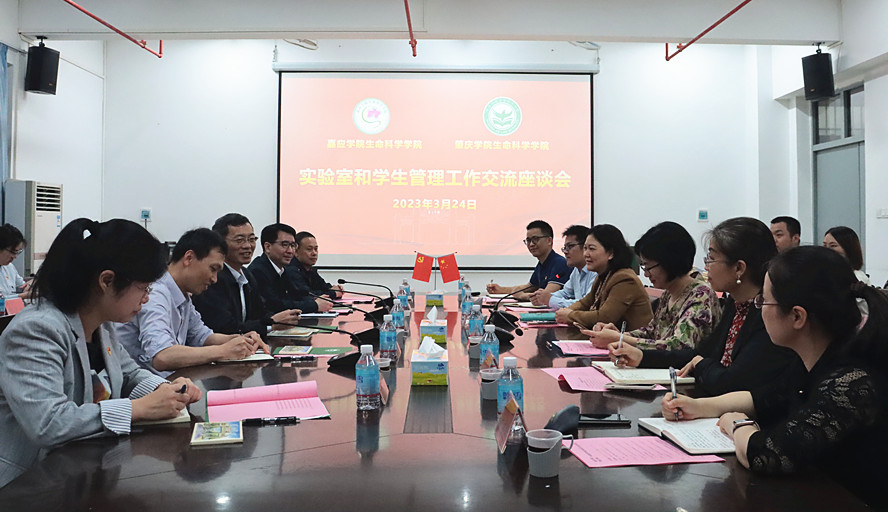 本网讯 3月24日,嘉应学院生命科学学院党委书记苏贤聚带领实验中心及学工团队一行来到永利官网,与生命科学学院开展交流活动。学院党委书记胡隼、副院长邵玲(主持行政全面工作)出席交流。