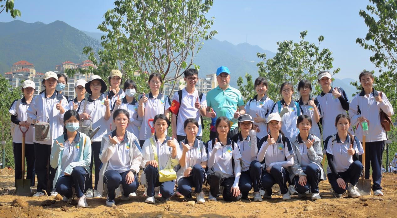 本次徒步植树活动从肇庆七星岩牌坊出发,途经星湖西路、禾花水道、万松园等地,终点落于阅江楼,全长10公里。在禾花水道一带的植树现场,师生一道拿铁铲,拎水桶,挖坑、填土、浇水……每道工序都有条不紊,现场一派热火朝天的景象。