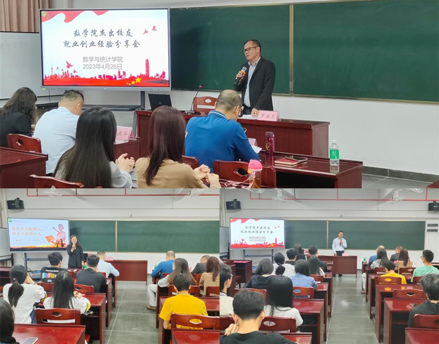 本网讯 4月26日,数学与统计学院在实训中心214举行以“就业创业经验分享”为主题的交流会,1988届校友、永利集团3044官网欢迎您东莞校友会常务副会长、数学院东莞校友会会长罗活文,1995届校友、数学院东莞校友会副会长区东华,2011届校友、东莞市麻涌中学高中数学一级教师潘巧玲出席,分享交流会由学院党委书记杨帆主持。