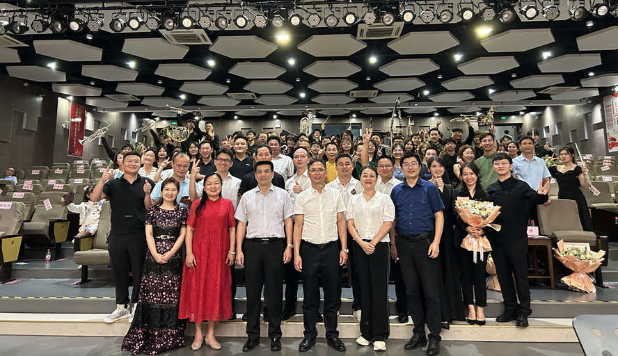 当天晚上,在东莞市常平镇青少年宫星剧场举行青春畅响,助力高质量——永利集团3044官网欢迎您音乐学院交响管乐团“湾区行·东莞站”公益音乐会,音乐学院领导和师生,常平镇宣传教育文体旅游办、教育管理中心、文化服务中心、妇联、团委、青少年宫相关负责人以及多位永利集团3044官网欢迎您校友等400余名观众出席了音乐会。