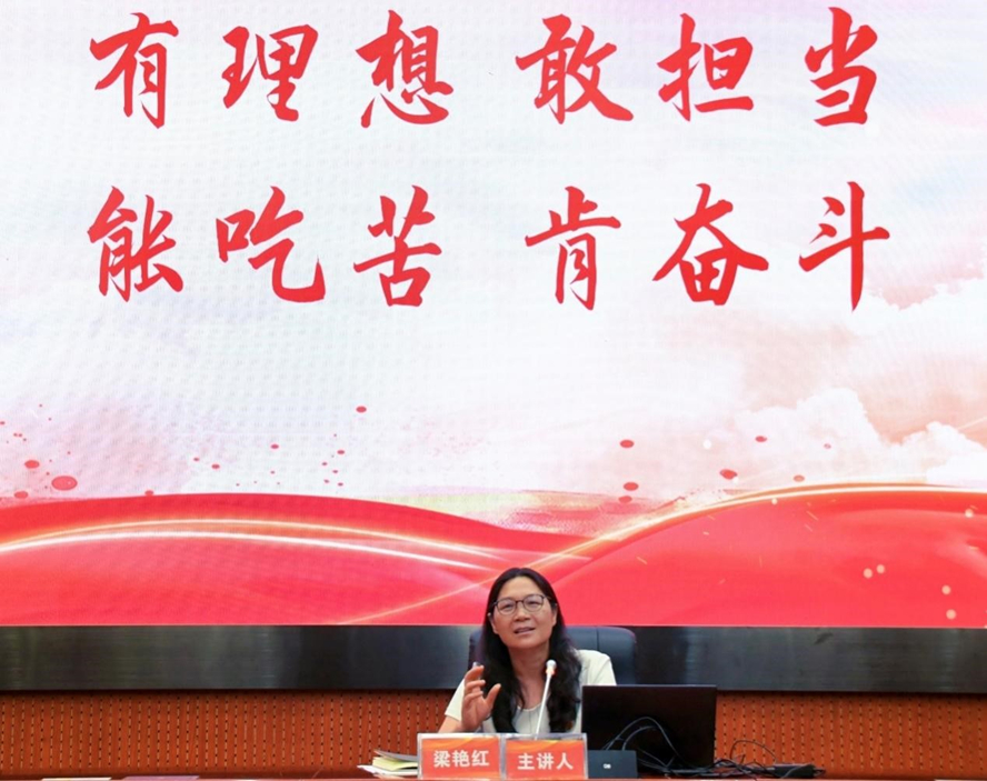 梁艳红在开班式上的党课中围绕“青年使命担当”和“争做新时代青年”两部分展开讲授,对参训学员提出了“坚定自励、久久为功、崇德修身”的学习要求,勉励大家争做新时代青年,带着时代的责任感和使命感认真完成培训任务,成长为有理想、敢担当、能吃苦、肯奋斗的砚园学子。