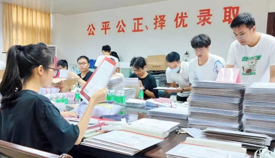 图片说明:日前,在招生办的精心组织下,2023级新生录取通知书邮寄工作顺利完成。图片可见,参与邮寄工作的师生细心地检查、整理、打包录取通知书、入学须知、致家长的公开信等邮寄资料,并交付快递公司进行邮寄。招生办提醒新生随时留意有关物流信息。