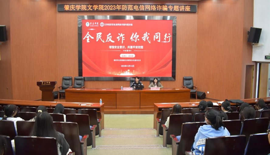 本网讯 近日,文学院开展以“全民反诈,你我同行”为主题的防范电信网络诈骗专题讲座,邀请肇庆市公安局端州分局刑侦民警吴日雯主讲。