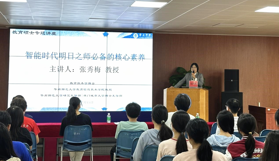 本网讯 12月15日,华南师范大学教育信息技术学院张秀梅教授应邀来到永利官网,为教育硕士研究生开展《智能时代明日之师必备的核心素养》专题讲座。