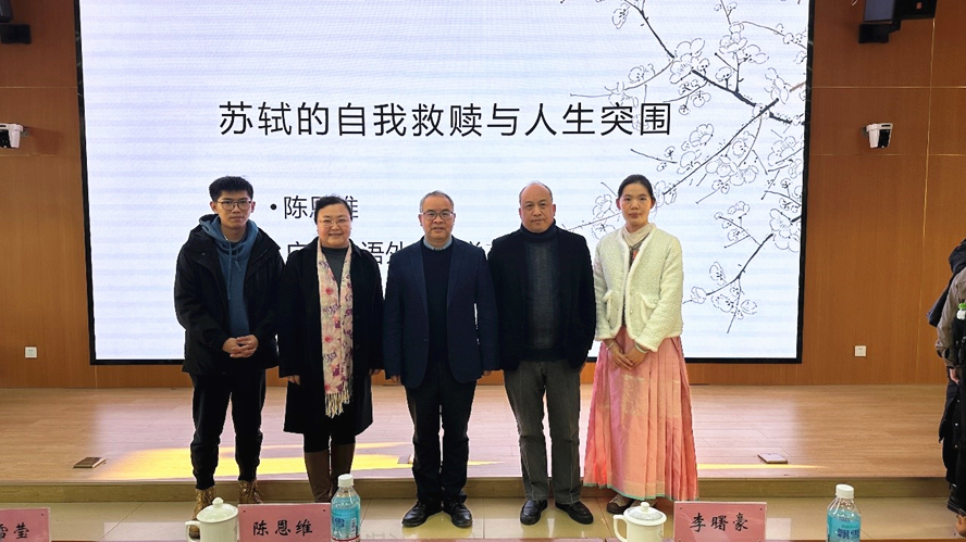 本网讯 12月26日,广东外语外贸大学陈恩维教授受邀到文学院作题为“苏轼的自我救赎与人生突围”学术讲座,永利集团3044官网欢迎您学报主编李曙豪、文学院院长唐雪莹出席讲座。