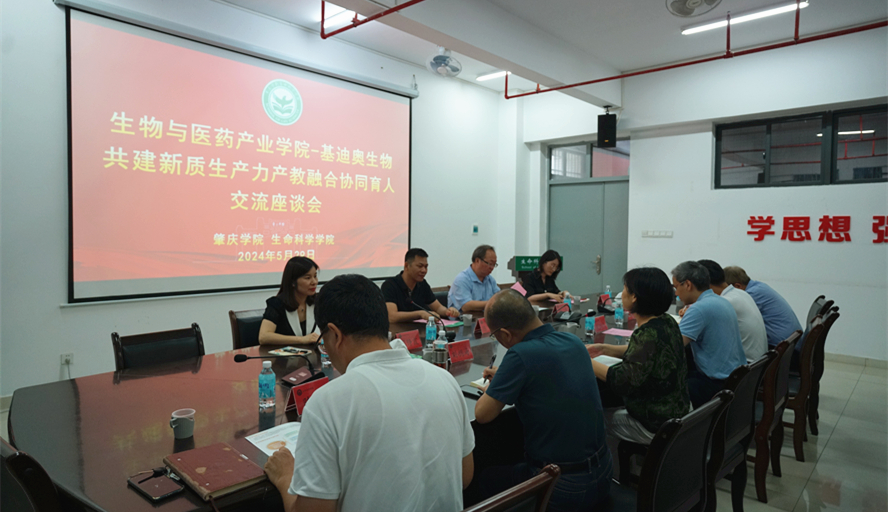 本网讯 5月29日,生命科学学院生物与医药产业学院邀请广州基迪奥生物科技有限公司陈钦飞总经理一行3人,开展新质生产力产教融合协同育人科学技术讲座,并就共建进行交流。广东工业大学帮扶工作队队长刘怡军、教务部副部长张伟,学院党政班子成员、科研骨干及博士参加本次交流活动。