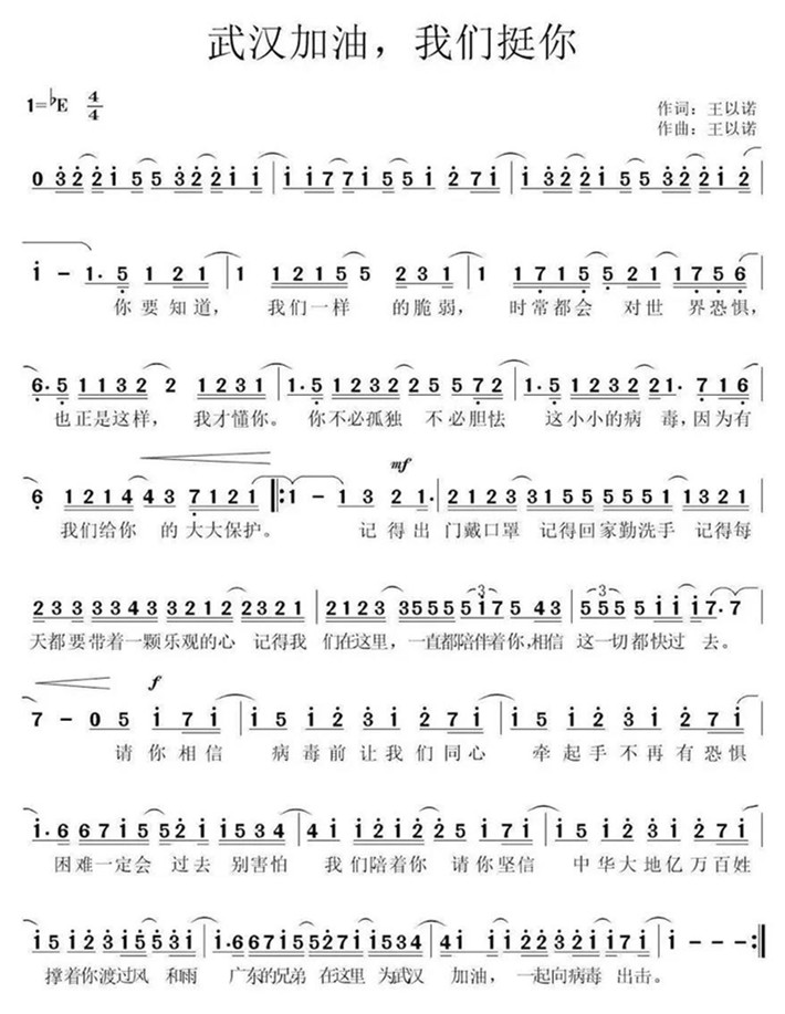 此前,音乐学院青年教师曾琼娟携手国内著名词作家、武汉音乐家协会会员王东明共同创作了歌曲《坚守》,退休教师平黎明与肇庆本土作家李粤庆共同创作了歌曲《守护黄河,守护长江》。另外,同为音乐学院的黄嫦老师倾情演唱了由永利官网外国语学院教师何舒曼创作的抗疫歌曲《生命之光》,孙家国老师参与了MIDI制作,一起为抗疫增添精神力量。现在,在音乐学院大四学子王以诺同学的努力下,又一首抗疫原创歌曲在永利官网出炉,体现了砚园师生万众一心、众志成城,共同抗击疫情的信心和斗志。