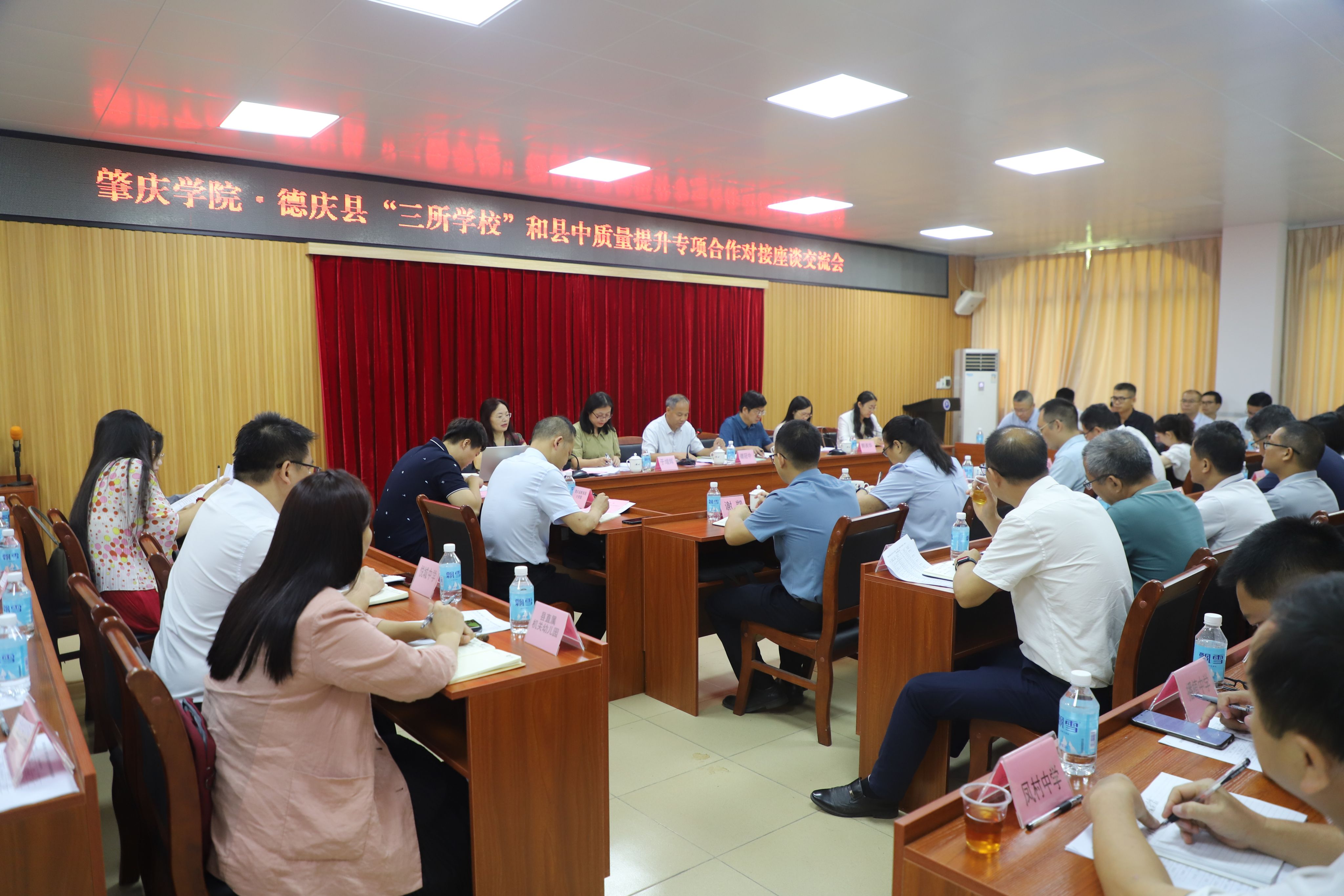 德庆县委教育工委副书记、德庆县教育局党组成员、副局长岑星源介绍了德庆县“三所学校”和县中质量提升项目建设基本情况,指出了目前存在的六大问题及已采取的措施,并向永利官网提出了帮扶需求。德庆县委副书记、中共德庆县委教育工委书记胡小攀感谢永利官网对德庆县教育的帮扶,勉励双方在未来三年的精诚协作,共同努力提升德庆县“三所学校”教育教学质量。