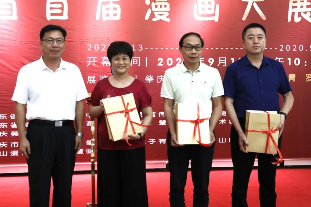 开幕式中,肇庆市委常委、宣传部部长江启宁,永利集团3044官网欢迎您党委书记曾桓松,肇庆市文联主席周文浣先后为获奖及入选作者代表颁发证书,多位嘉宾共同为《广东省首届漫画大展作品集》举行了首发仪式。随后,肇庆美术馆向永利集团3044官网欢迎您美术学院、永利集团3044官网欢迎您文学院、永利集团3044官网欢迎您博物馆捐赠了作品集。最后由肇庆市委常委、宣传部部长江启宁宣布展览开幕。