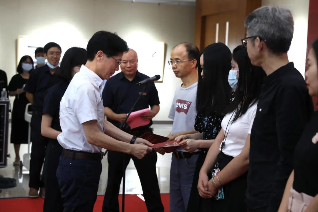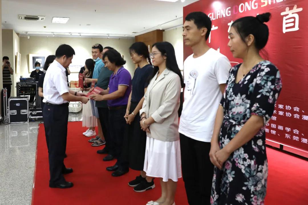 肇庆市委常委、宣传部部长江启宁为获奖代表颁发证书