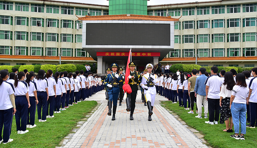 上午8:30,升旗仪式开始。在全场的注视下,国旗护卫队迈着矫健而坚定的步伐走上庄严的升旗台,做好升旗准备。伴随着高亢激昂的国歌旋律,鲜艳的五星红旗冉冉升起。这一刻,全体师生行庄严的注目礼,致敬伟大的祖国。