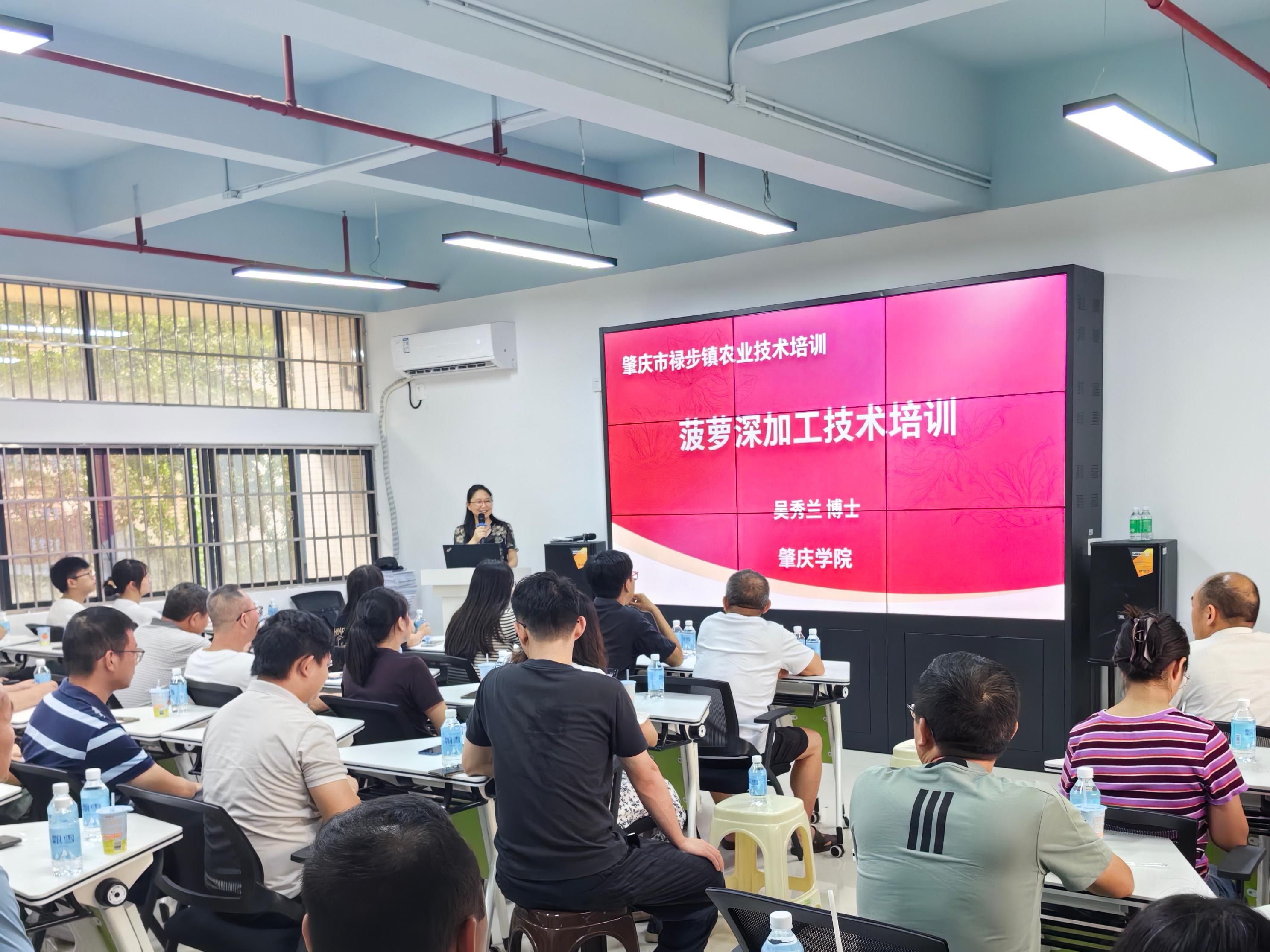 本网讯 一颗金黄饱满的双马菠萝,如何突破鲜果销售的季节局限,蜕变为市场青睐的高附加值产品?6月18日,一场以“科技赋能产业升级,深加工助力乡村振兴”为主题的双马菠萝深加工技术培训会在永利集团3044官网欢迎您举行。禄步镇驻镇工作队队长胡昌超带领种植户、合作社代表、农技人员等41名“新农人”,带着产业升级的迫切需求,走进高校实验室寻找答案。