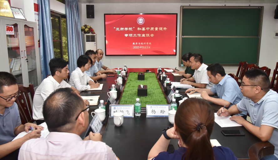 本网讯 9月5日,数学与统计学院与云浮市云安区教育局就“三所学校”及县中质量提升工作组织座谈会。学院党委书记李先强、院长吴晓、党委副书记高洁云、副院长谷泽参加。云安区教育局局长成朝宇、北京师范大学珠海校区继续教育学院马西龙主任、云安区教育局副局长陈林盛,以及北师大珠海校区继续教育学院、云安教师发展中心有关教师参加会议。