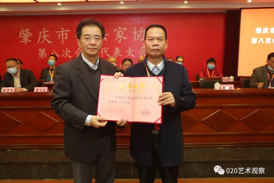 会上,肇庆市书协第八届主席团聘请邬邦生、孔令深、张清标为名誉主席,聘请黄新华等8人为顾问,李刚代表主席团颁发了聘书。会议还选举产生了肇庆市书协第八届理事。