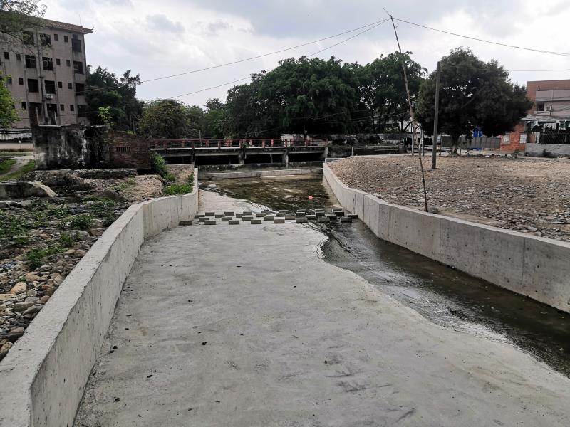 该治理工程总投资约600万元,全长约930米,主要建设内容包括河道清淤、重力式砼挡墙护岸、砼底板护底及钢筋混凝土U形槽、重新设置溢洪道走向等。项目的完成将彻底改变该地段原有杂草丛生、排水不畅的面貌,学校每年汛期受洪水威胁的情况也将大大改善。