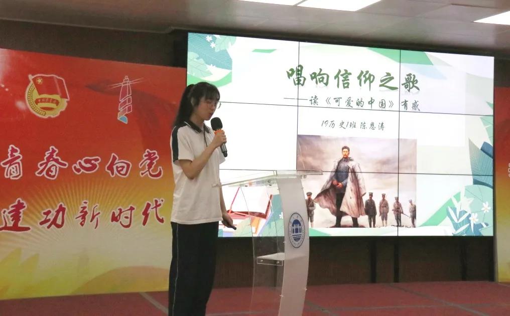 《可爱的中国》、《黑夜固然漫长,黎明终会到来》、《日出东方,红光闪亮》……参赛选手分享了红色经典中最令自己动容的历史时刻或历史人物,回顾中国共产党的百年奋斗历程,讴歌老一辈共产党员不怕牺牲、勇于奉献的高贵品质。参赛同学真情实感的分享引起了现场每一个师生的强烈共鸣,赢得了阵阵掌声。
