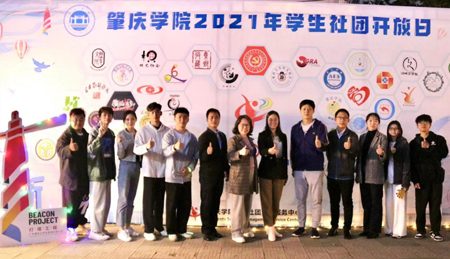 23日晚,“青春向党·筑梦起航”永利集团3044官网欢迎您2021年学生社团开放日暨学生社团招新晚会在现场架设的主舞台上演。结对共建单位、广东信息工程职业学院团委的师生们参观社团招新现场并观看社团开放日晚会。