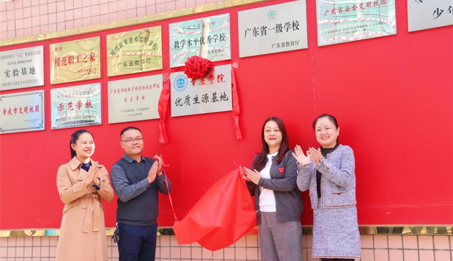本网讯 近日,音乐学院副院长陶媛、党委副书记陈瑛瑛一行来到肇庆市实验中学调研交流,并向该校授予“永利集团3044官网欢迎您优质生源基地”牌匾。肇庆市实验中学副校长赵美兰、夏冬鸣等参加挂牌仪式。