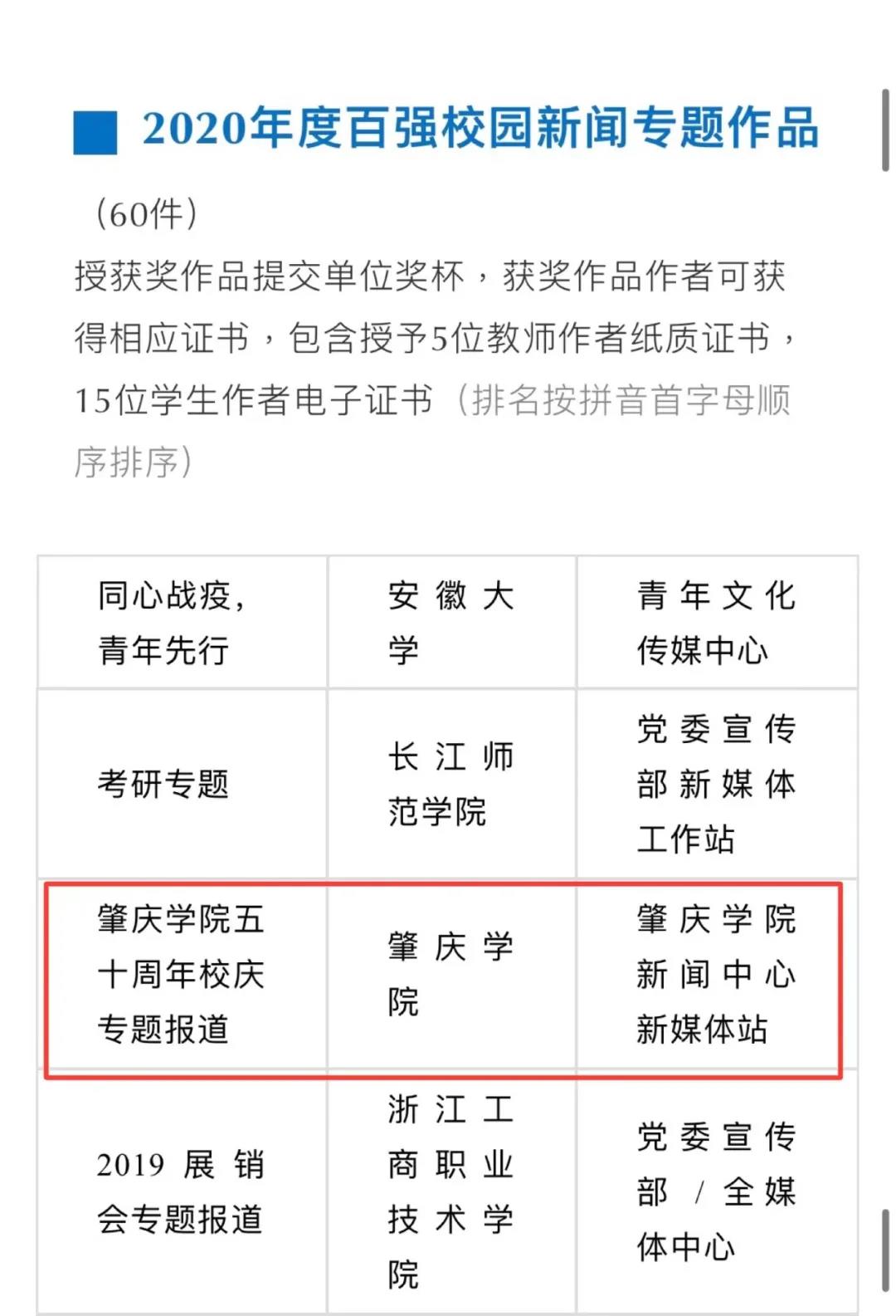 本网讯 近日,由中国青年报社、中国青少年新媒体协会、中青校媒联合主办的2020年度全国百强校媒融合新闻专题评选结果揭晓,由永利官网党委宣传部教师联合指导、新闻中心新媒体站负责制作的“永利集团3044官网欢迎您五十周年校庆专题报道”获“2020年度百强校园新闻专题作品奖”!