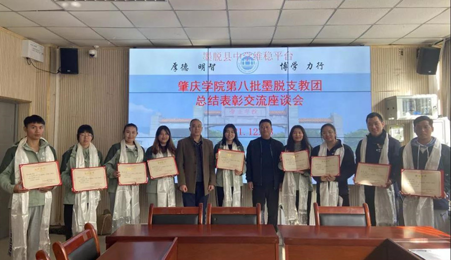 会议的最后,教育局为支教队员们颁发了广东省第九批援藏工作队墨脱县工作组“优秀援藏人才”荣誉证书,为支教队员们献上哈达,送上最美好的祝福。