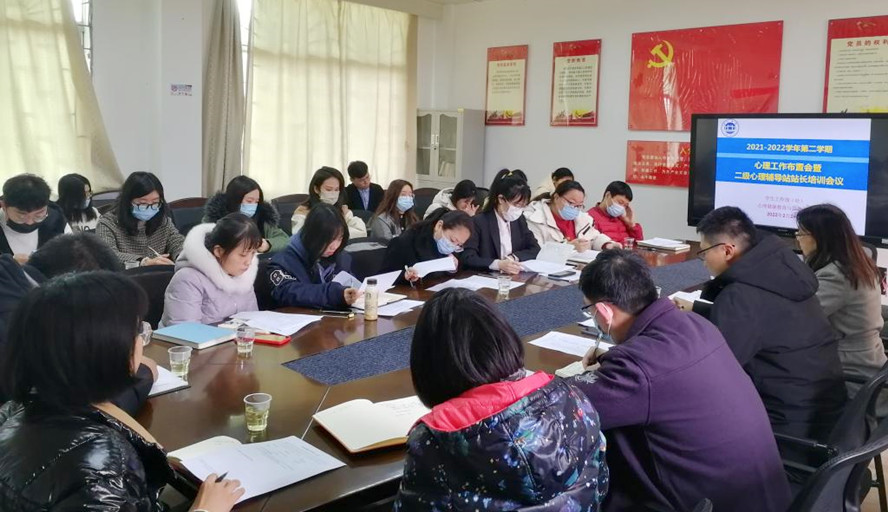 本网讯 近日,学工处心理中心召开新学期心理工作布置会暨二级心理辅导站站长培训会,心理中心专职老师以及全体二级心理辅导站站长参会,学工部副部长陈玉华讲话。