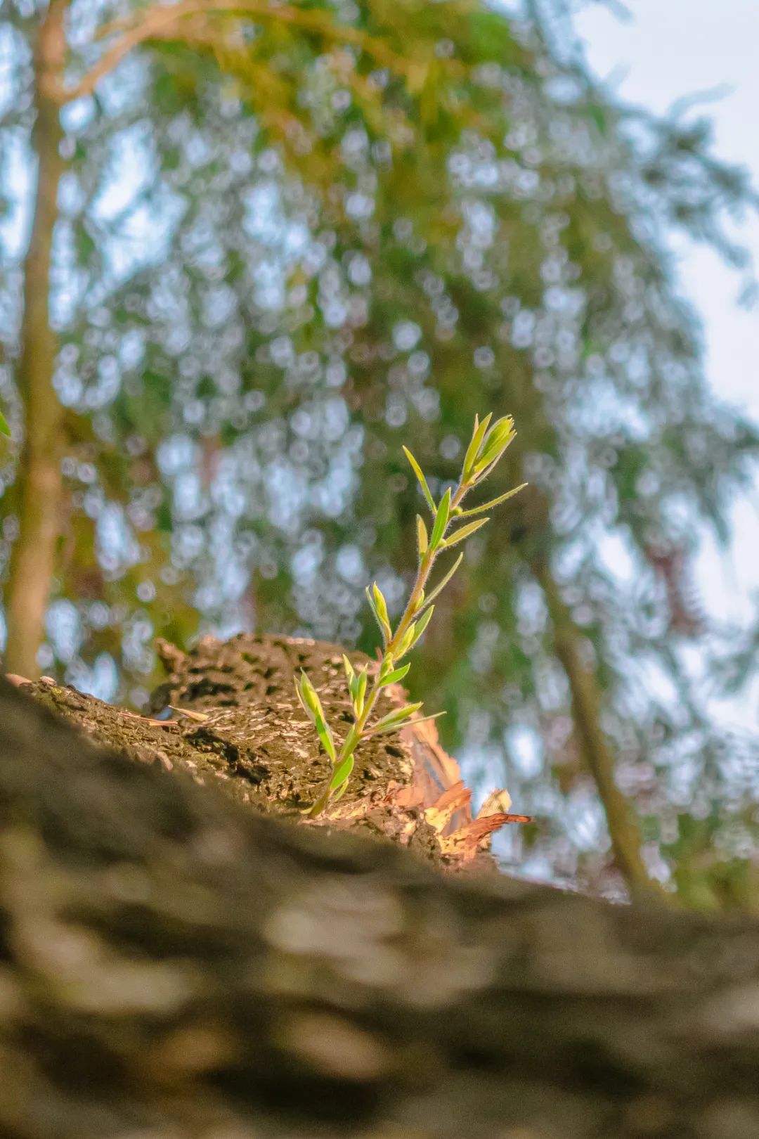“春天就藏在长长的树枝里”,那些远看毫无生机的树梢上早已长出了嫩芽。它们奋力地靠近阳光,铆足了劲,预备为大树换上翠绿的新衣,原来,春天就藏在这里。