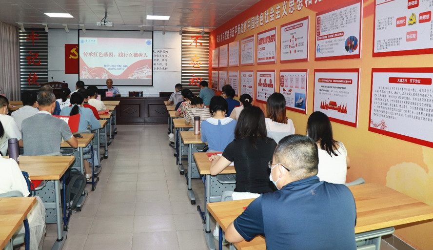 杨帆以《传承红色基因,践行立德树人》为题讲党课,带领教师党员学习习近平总书记在中国人民大学考察时的重要讲话精神和中共中央办公厅印发的《关于推动党史学习教育常态化长效化的意见》,结合学院工作,传达省第十三次党代会精神,希望学院全体教师党员立足本职工作岗位、践行立德树人使命,做“经师”和“人师”的统一者,以实际行动迎接党的二十大胜利召开。