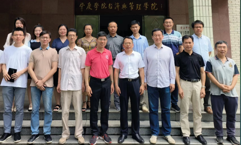本网讯 7月5日,应经济与管理学院邀请,广东外语外贸大学金融学院院长展凯、党委书记徐昶斌带领党政班子、系主任和骨干教师等一行11人来学院开展交流活动。
