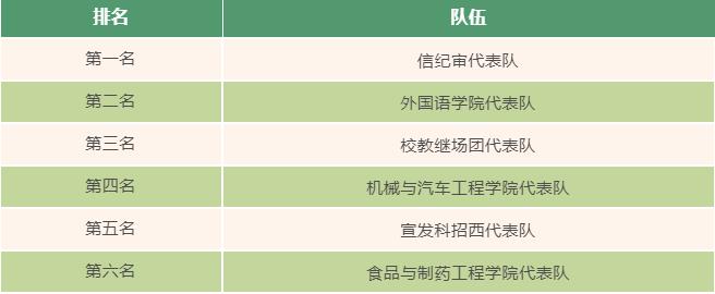 (注:信纪审代表队队员来自信息中心、纪检监察室与审计处;校教继场团代表队队员来自校办、教务处、继续教育处、场馆中心与团委;宣发科招西代表队队员来自宣传部、发展规划处、科技处、招投标中心与西大资产经营管理有限公司)