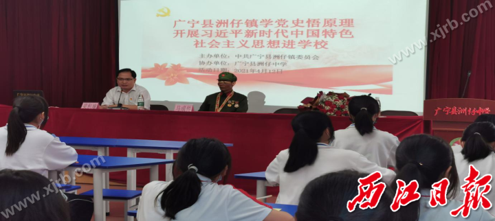 广宁县洲仔中学邀请英雄讲党史。市教育局供图
