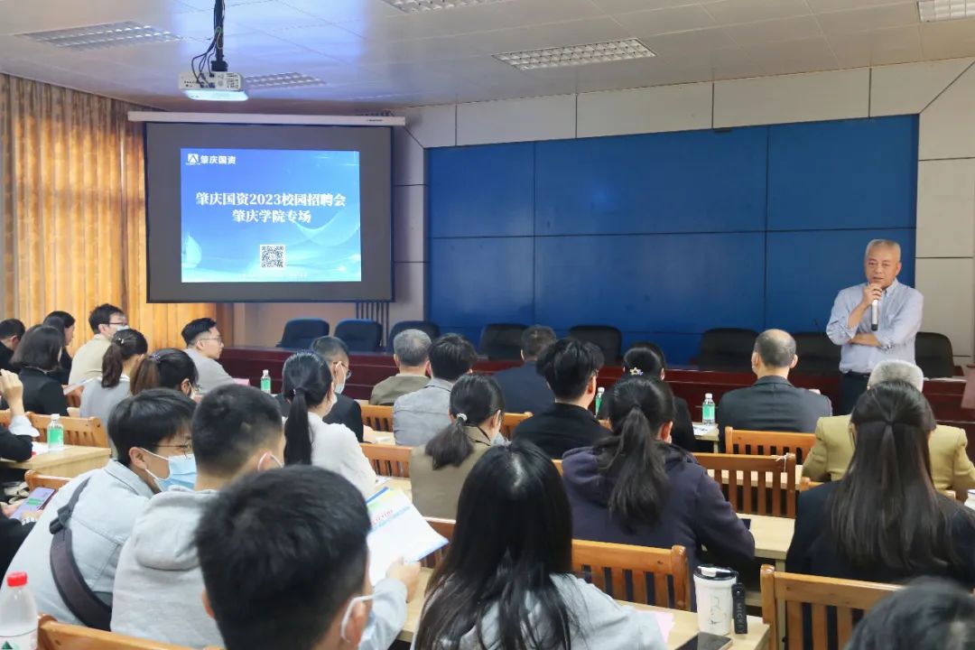 市国资委着力为学生提供最优质的就业平台,吸引了众多学子陆续前来咨询。在宣讲会上,市国资委党委委员、副主任陈晧首先上台致辞,他表示,肇庆国资国企平台前景广阔,能让各类优秀的人才在这个舞台上快速成长、成就自我,欢迎大家踊跃投递简历;各企业招聘代表则轮流上台对本企业进行介绍,学子们认真聆听,积极获取对自身有利的信息。